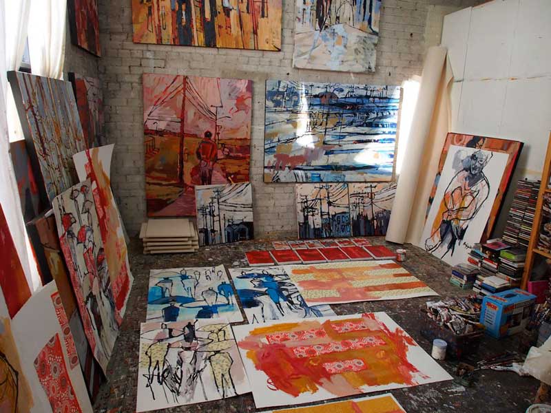 It’s been such a pleasure to do paintings of the Doorway staff in my studio. As I prepare for my show at Axis in the Spring, I am thinking about the Doorway, and all that this organization does for young people transitioning off of the street. I have been moved by the stories of change and transition that the Doorway helps to facilitate. I am doing paintings of Marilyn Dyck, Rikia Novotny, Aaron Jensen and Yvonne Franscisco as a way of describing the stories and underlayers of the city . While there are no actually people in my current urban landscapes, there are many references to those who are and were present in these places.