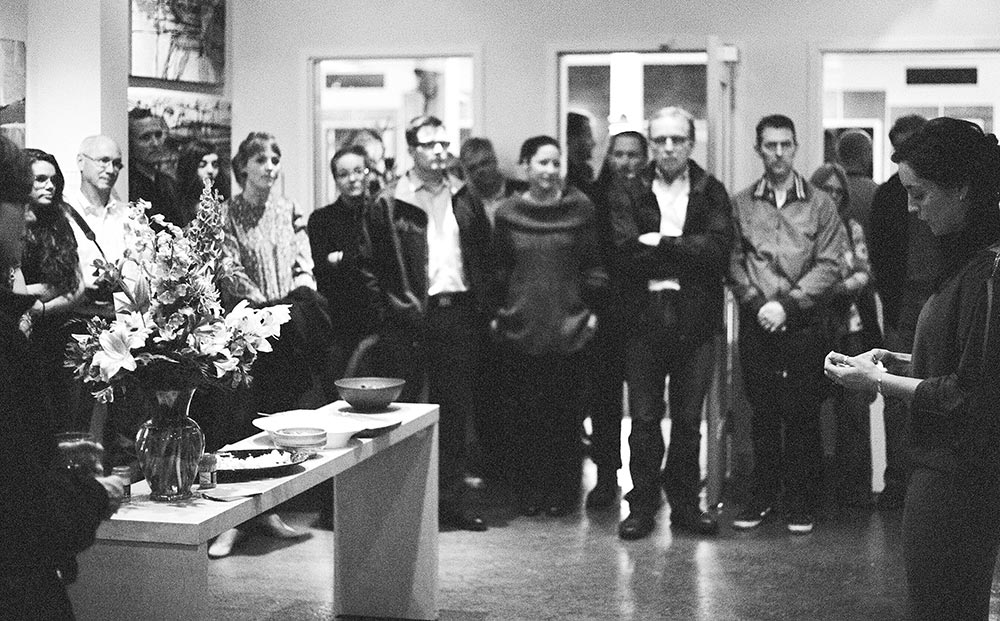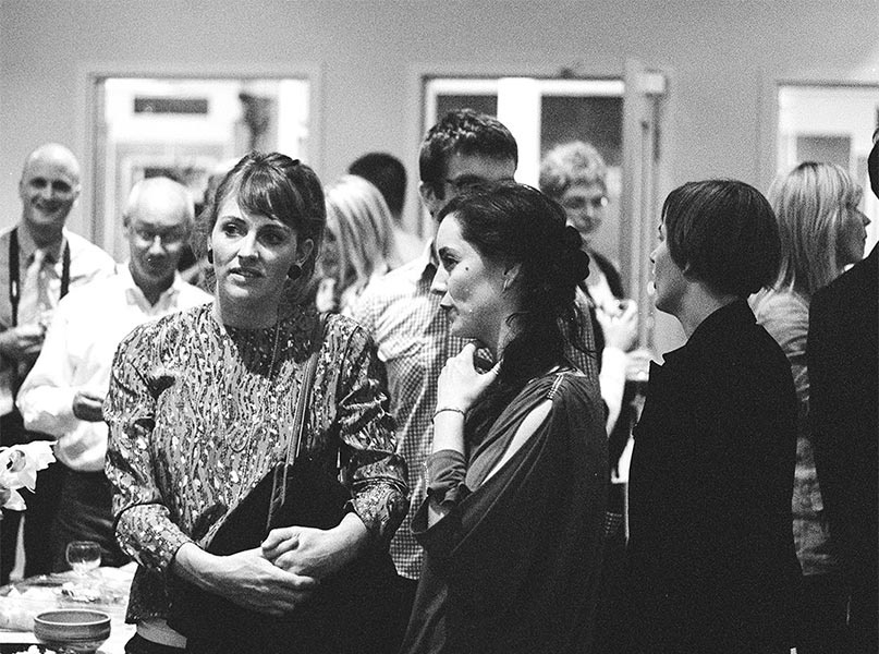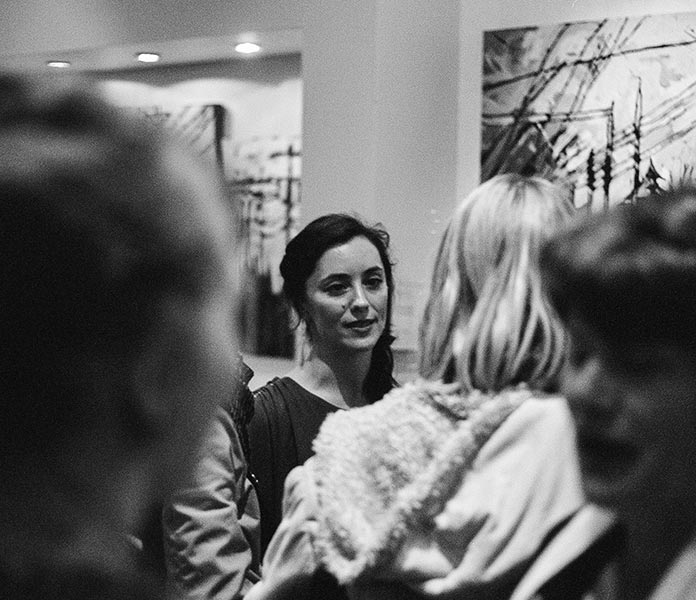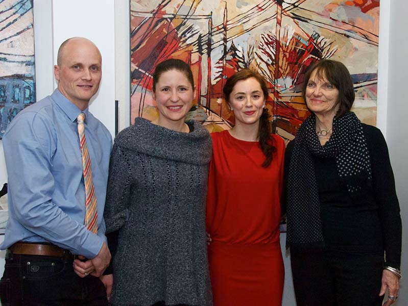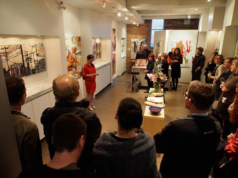 Last week, Calgary photographer Sanja Lukac took black and white photos on the opening night of ‘Urban Blueprints.’ She truly captured the art opening and crowd. A number of people braved the rain that evening to view this new body of work. Thank you to everyone who attended. I also presented four portraits to The Doorway (an organization in Calgary that helps youth transition off of the streets). If you didn’t have a chance to see my show, the paintings can also be viewed online at: www.axisart.ca/artists/amyDryer.php
